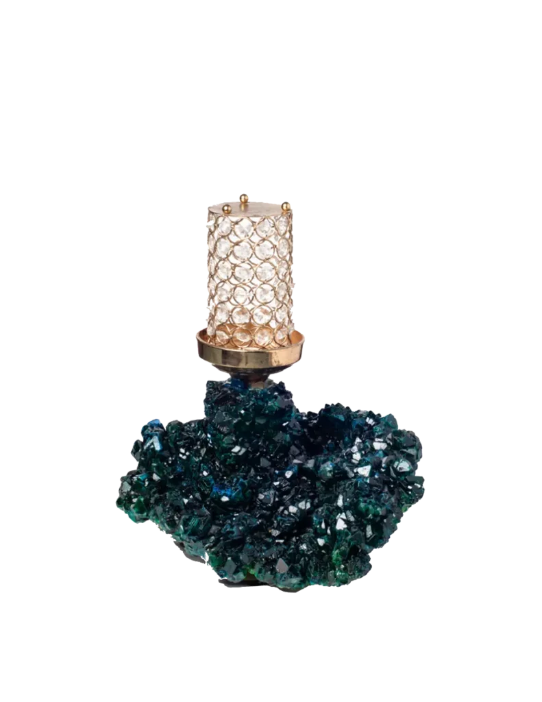 Add a touch of mystery with the deep green sheen of obsidian. This lamp provides a grounding presence, suitable for modern and minimalist interiors