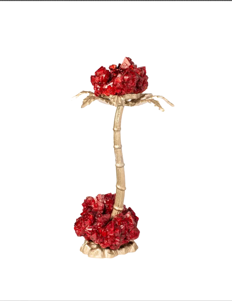Elevate your space with the Red Alum Crystal Candle Stand, featuring a bold red-dyed crystal design and a sleek brass silver base. A striking statement piece that adds color, elegance, and warmth to any setting.
